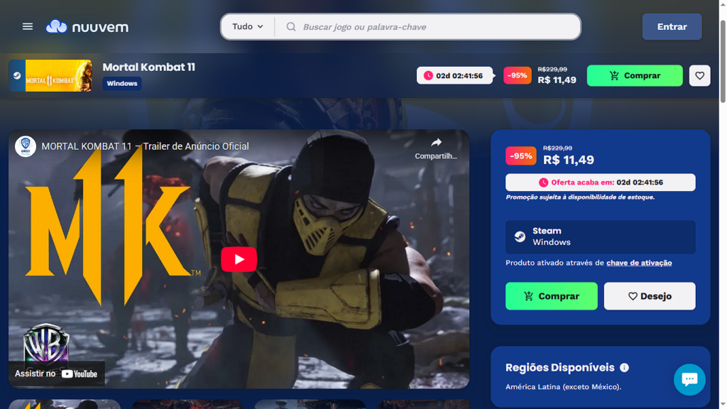 A compra pela Nuuvem garante uma chave oficial para PC, com ativação direta na Steam, o que traz segurança e praticidade na hora do resgate.