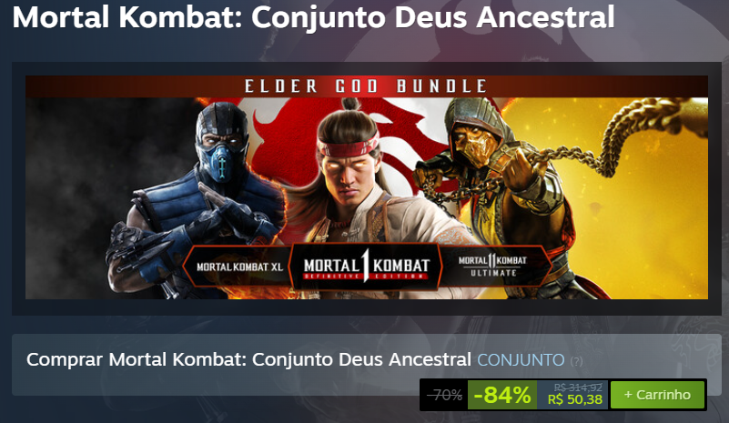Se você é do tipo que sente um arrepio na espinha toda vez que ouve o clássico “Get over here!”, prepare o coração (e os dedos). A Steam resolveu abrir os portões de Netherrealm com uma oferta que parece até erro de estagiário. O pacote Mortal Kombat: Conjunto Deus está com um desconto agressivo de 84%, saindo por meros R$ 50,38.