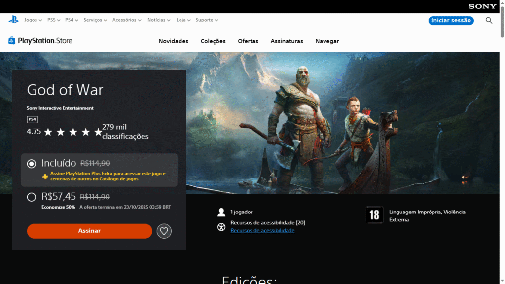 Agora, o título está com 50% de desconto na PlayStation Store, saindo de R$ 114,90 por apenas R$ 57,45. Uma oportunidade imperdível para quem ainda não viveu a jornada de Kratos e Atreus pelos reinos nórdicos.